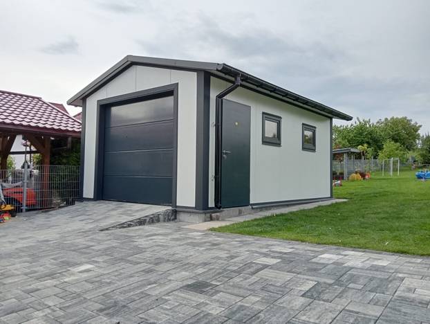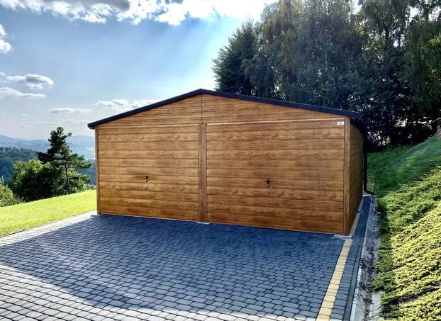 Za one koji žele korak više u izgledu i komforu, sve su popularnije premium garaže od sendvič panela. Riječ je o izoliranim pločama s vrlo lijepom završnom obradom, koje se odlično uklapaju u dvorište – vizualno djeluju uredno i “čisto”, a dodatna izolacija dobro dođe ako u garaži planirate držati osjetljiviju opremu ili želite stabilniju temperaturu kroz godinu. Ukratko: isto praktično rješenje, ali s premium dojmom.