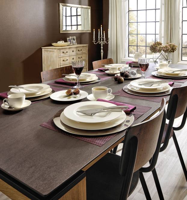 Pastelni i bež tonovi posuđa unose osjećaj bezvremenske elegancije i lako se uklapaju u različite stilove interijera, dok crno posuđe stvara moderan i profinjen dojam, osobito u kombinaciji s minimalističkim kuhinjama. Bijeli tanjuri ostaju klasičan izbor jer su neutralni, jednostavni za kombiniranje i dodatno ističu serviranu hranu. Različite teksture, poput mat ili blago reljefnih površina, mogu obogatiti vizualni dojam stola i čine ga zanimljivijim. Pažljivim odabirom boja, oblika i materijala posuđa moguće je stvoriti skladnu i privlačnu cjelinu koja podiže doživljaj svakog obroka.