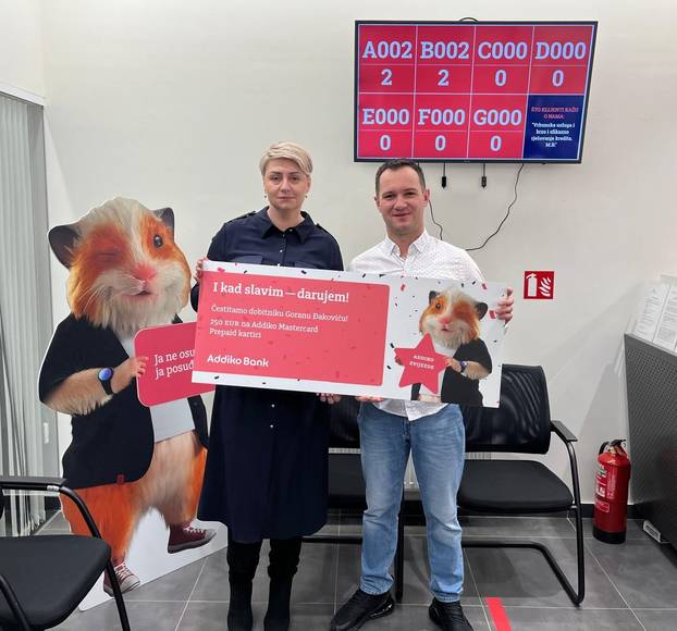 Zadovoljan klijent belomanastirske poslovnice, Goran Đaković, nagrađen je s 250 eura kao simboličnom zahvalom za sudjelovanje u ocjenjivanju. Addiko banka već treću godinu zaredom, putem anketa, uključuje klijente u proces unapređivanja svojih poslovnih procesa i podizanja razine zadovoljstva i dobrog iskustva u poslovnicama.