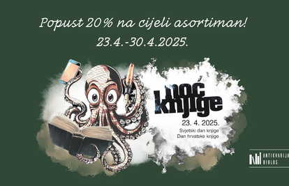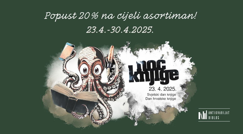 Iskoristite posebnu akciju od 20% na sve knjige u razdoblju od 23. do 30. travnja i obogatite svoju kolekciju antikvarnih naslova i klasika u Antikvarijatu Biblos, kojeg možete posjetiti i na adresi Palmotićeva ul. 28 u Zagrebu.