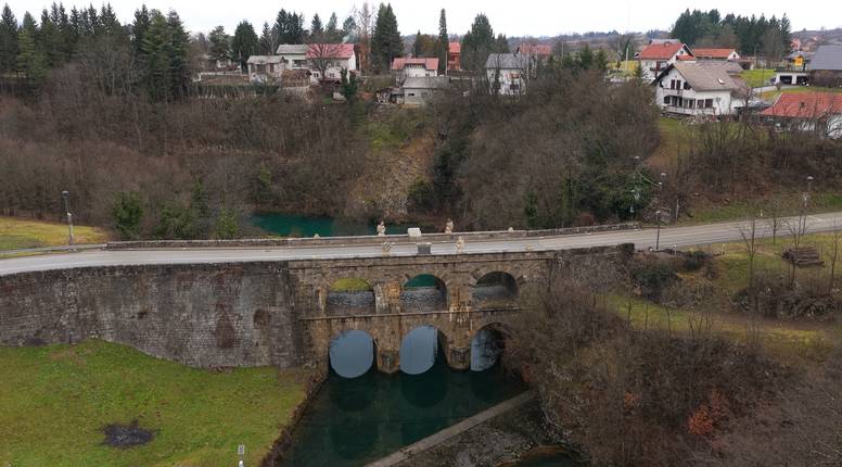 Ističe se kao jedan od najviših mostova, jedini dvokatni kameni most u Hrvatskoj, ali i jedini most koji na sebi ima kipove i spomen ploče. Most je 1775. sagradio Vinko Struppi, a 1836. vojni graditelj Josip Kajetan Knežić dogradio ga je drugim katom. Za vrijeme Drugog svjetskog rata srušen je drugi kat mosta te su spomen ploče i kipovi pali u rijeku Tounjčicu. Iako je obnova mosta trajala od 1957. do 1973., tek je 2011. most vratio svoj nekadašnji sjaj. Kako je tekla obnova i zašto su kipovi i spomen ploče bile određeno vrijeme u privatnom vlasništvu, pogledajte u Koordinaciji u rubrici Miljokaz.