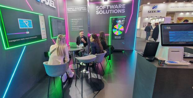 Real Grupa, s više od 20 godina iskustva, na sajmu se predstavila pod okriljem novog brenda Real-Pixel, a njezin stručni tim prezentirao je poslovna softverska rješenja. Poseban interes posjetitelja izazvali su CMS Digital Signage sustav, Media Player software, interaktivne touch aplikacije i QMS — sustav za upravljanje redovima čekanja.