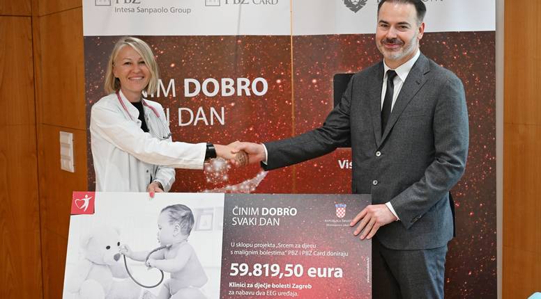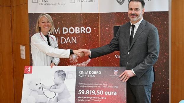 U povodu potpisivanja strateškog ugovora PBZ grupa, dio Intesa Sanpaolo Grupe, organizirala je uručenje donacije Klinici za dječje bolesti Zagreb. Donaciju u iznosu od 59.819,50 eura PBZ grupa je realizirala u sklopu svog humanitarnog projekta „Činim dobro svaki dan“ i Visa kartice sa srcem – jedinstvene Visa kartice na našem tržištu. To je 97. donacija PBZ grupe u sklopu ovog projekta, a Klinika za dječje bolesti Zagreb iskoristila ju je za nabavu dva EEG uređaja. Donacija je dio pomaganja projektu Ministarstva zdravstva pod nazivom „Srcem za djecu s malignim bolestima“.