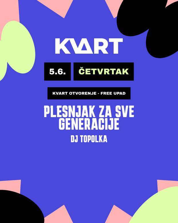 A organizatori KVART-a svim Varaždincima i Varaždinkama, kao i njihovim gostima, poklanjaju besplatan upad na otvorenje festivala u četvrtak, 5. lipnja kada će u 21 sat biti održan Plesnjak za sve generacije. DJ-ica Topolka priprema plejlistu s izvođačima poput Vlade Kalembera, Novih fosila, Colonije, Alke Vuice, Modern Talking i mnogih drugih klasika. Plesnjak za sve generacije P4 organizira u suradnji s Gradom Varaždinom, a ulaz je slobodan.