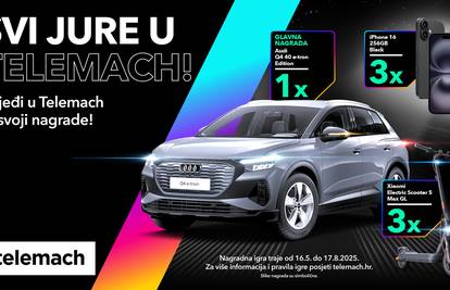 Telemach je još jednom potvrdio kako njegovi korisnici uvijek dobivaju više - i to ne samo kada su u pitanju kvaliteta i pouzdanost mobilne mreže. Naime, svi korisnici koji od 16. svibnja do 17. kolovoza 2025. prijeđu na Telemachovu mobilnu mrežu mogu sudjelovati u velikoj nagradnoj igri i osvojiti vrijedne nagrade – uključujući automobil Audi Q4 40 e-tron Edition, pametne telefone Apple iPhone 16 te Xiaomi električne romobile.