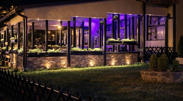 Restoran Dva potoka poznat je i po organizaciji događanja: krizme, pričesti, krstitke, rođendani, domjenci i poslovna okupljanja, kao i veće obiteljske grupe. Njegova prednost nije samo u prostranom interijeru, već i u posebnom ambijentu koji cijelom događaju daje osjećaj mira i ugode – okružen zelenilom, uz vrhunsku organizaciju.