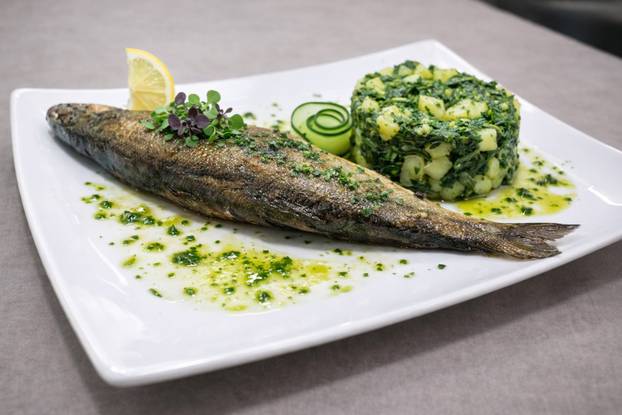 Drugi favorit koji se ovdje često spominje je svježa pastrva. Priprema je namjerno jednostavna, jer naglasak nije na kompliciranju, nego na svježini i pravilnoj izvedbi. Upravo takva jela pokazuju sigurnost kuhinje koja zna što radi i ne skriva se iza teških umaka.