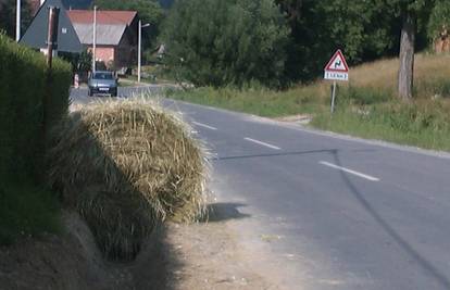 Bala sijena otkotrljala se niz brijeg do kanala kraj ceste