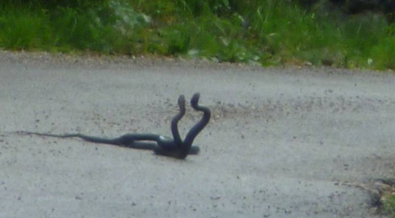Čitateljica 24sata primjetila je u blizini svoje kuće u Jelenju kraj Rijeke dvije zmije kako se pare. Radi se Crnom gadu ili Crnoj poljarici koja nije opasna za čovjeka