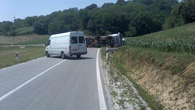 Kamion se prevrnuo s ceste u jarak, vozač lakše ozlijeđen