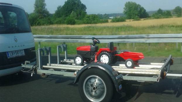 Austrijski turisti u Renault Espaceu nakrcali su spremnik igračkama, a kako mjesta nije bilo za ključnu igračku, maleni traktor, za ljubav djece, stavili su ga na prikolicu