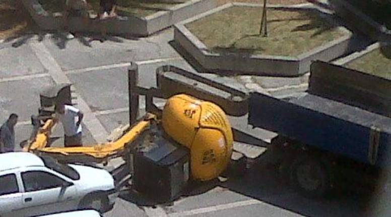 Pazi bager! Prevrnuo se i sa 'žlicom' zdrobio parkirani auto