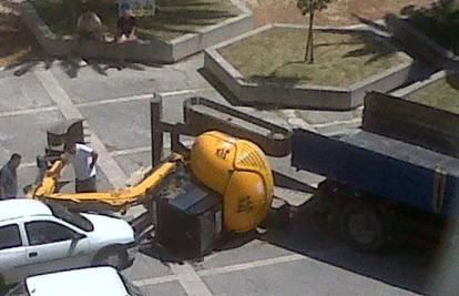Bagerist i drugi radnici u utorak su u Šibenskoj ulici na splitskom Kmanu pomoću rampe spuštali bager s kamiona. No, jedna staza rampe se otkačila. Bager se prevrnuo i ‘žlicom’ zahvatio parkirani auto. Zdrobio mu je cijeli prednji dio. Vozač bagera nije se ozlijedio te je sam uspio izaći van. Na mjesto nesreće stigao je i vlasnik bagera kako bi se s vlasnikom dogovorio oko isplate štete. Ponudio mu je kupnju novog auta.