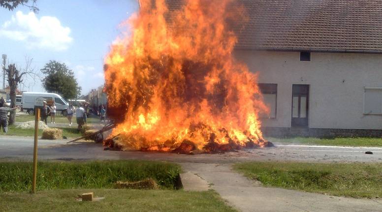 Samo prisebnost vozača traktora kao i brza intervencija lokalnih vatrogasaca iz Bizovca, spriječili su da se požar koji je nasred Sunčane ulice u Bizovcu zahvatio dvije prikolice pune sijena ne proširi na obližnje kuće.