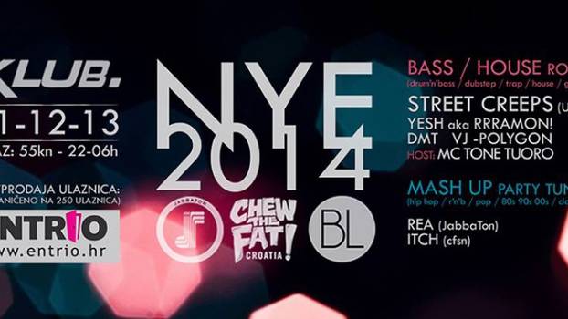Jedini bass doček Nove godine u Zagrebu 31. prosinca režira ekipa iz najpoznatijeg bass kolektiva Chew The Fat! Croatia, senzualnog Black Lighta, te najdugovječnijeg klupskog programa JabbaTon iza kojih stoje Yesh i DMT.