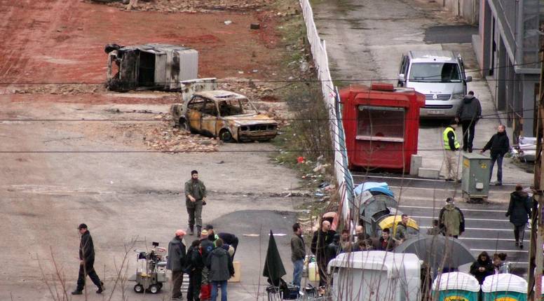 Filmski set osigurava puno zaštitara i policajaca pa nije moguće prići blizu. Prema onome što smo uspjeli vidjeti, u sceni sudjeluju tri kamiona puna vojnika u srpskim uniformama. Snima se u dijelu vojarne koji je autentičan i nije obnavljan nakon rata, a dim i prevrnuti automobili okružuju cjeli filmski set.