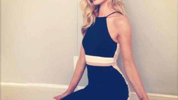 Pozirala je u pripijenoj crnoj haljini sa svijetlim detaljima te crnoj suknji i topiću koji je naglasio njen isklesani trbuh. Snimala je reklamu za ModelCo kozmetiku