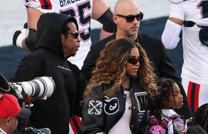 Slavni reper Jay-Z je na Super Bowl došao u pratnji svojih kćeri, Blue Ivy i Rumi. Njihova je majka, slavna pjevačica Beyonce, izgleda odlučila propustiti ovaj sportski događaj
