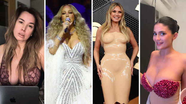 Manekenka Heidi Klum na dodjelu Grammy nagrada stigla je u bizarnoj haljini zbog koje se činilo da je potpuno gola. U pripijenoj haljini boje kože od lateksa Klum se jedva kretala.