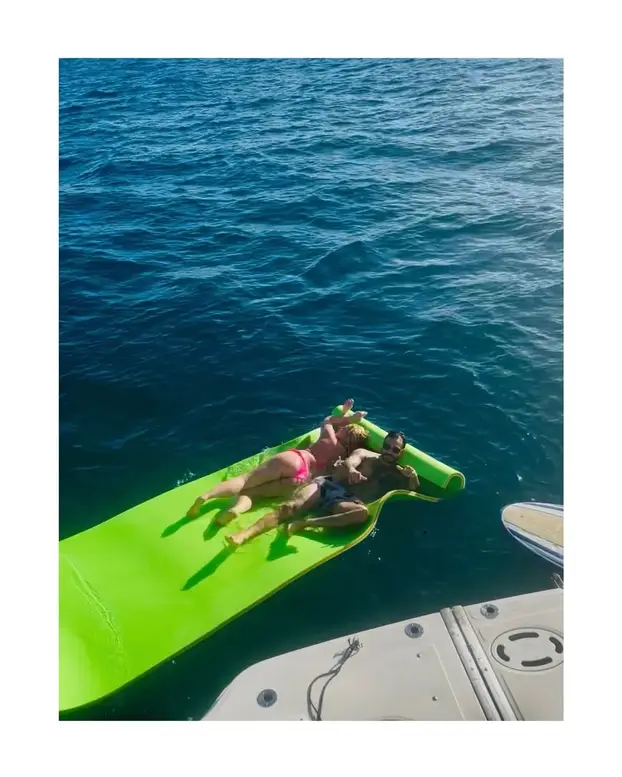 Izgledali su vrlo prisno pa se mnogi pitaju je li riječ o njenom novom dečku ili samo prijatelju. Brčkali su se u moru, pili votku i zezali se na jahti. Misteriozni muškarac bio je u kupaćem, a ima tamnu kosu i nekoliko tetovaža. No lice je 'sakrio' ispod sunčanih naočala.