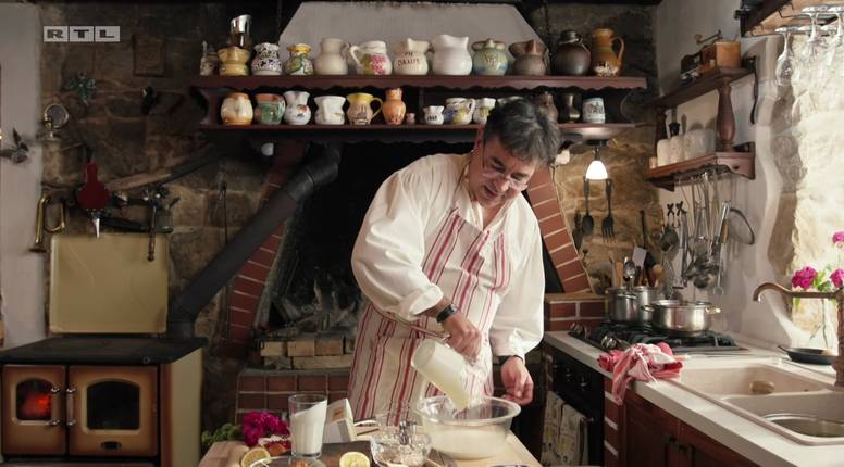 Svojim gostima Damir će pripremiti predjelo 'Glavat pijan, pečen i kuhan', glavno jelo 'Kamen gori val se pjeni' te desert 'Mali brkati'.