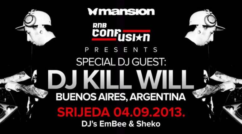 U srijedu 4. rujna za dj pult kluba Mansiona stat će argetinski DJ Kill Will koji će zagrebačkoj publici dočarati partyje dalekog Bueno Aires-a. Dj Kill Will svira u prestižnim klubovima Bueno Aires-a, a klupske pozornice dijelio je sa svjetskim zvijezdama diljem latinske Amerike i Europe.