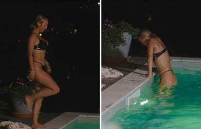 Kandidati 'Večere za 5' sjedili su u dvorištu nedaleko od bazena, a vrckava Lukrecija nije mogla odoljeti iskušenju pa je skinula odjeću i uskočila u vodu