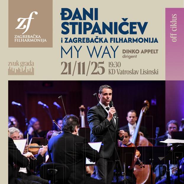 Jedan od najprepoznatljivijih hrvatskih tenora Đani Stipaničev vraća se na veliku pozornicu Koncertne dvorane Vatroslava Lisinskog s posebnim koncertom pod nazivom „My Way“, u pratnji Zagrebačke filharmonije i pod ravnanjem maestra Dinka Apelta u sklopu popularnog Off ciklusa Zagrebačke filharmonije.