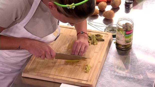 Kako je vrijeme odmicalo, napetost je u kuhinji rasla iz minute u minutu. Kandidati su pokušavali kombinirati okuse i teksture, balansirati kocke, valjke i kugle te uskladiti sve elemente s okusom klasične francuske salate. Selma je radila gel od jabuke kako bi povezala grašak, Barbara je pokušavala spasiti komponente koje se nisu stigle dovoljno stisnuti, a Renata je bila oduševljena svojom prvom majonezom. „Sve me sluša, boja i tekstura su savršeni.“