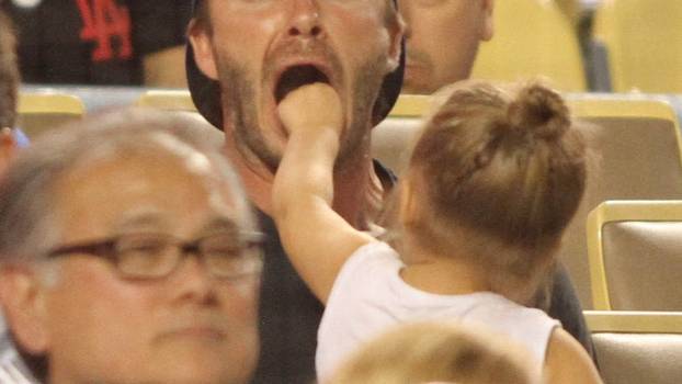Po uzoru na majku Victoriju (39), koja je opsjednuta modom, djevojčica je Davidu namjestila i bejzbolsku kapu. Okrenula mu je šilt naopačke jer joj je mama rekla da tako nose svi “pravi frajeri”. Kad ju je David probao umiriti rekavši da bi volio barem malo vidjeti kako dečki igraju, ona ga je ušutkala gurnuvši mu svoju dudu u usta. Na kraju ga je poljubila jer joj je dopustio da “divlja” dok ih je cijeli stadion gledao.
