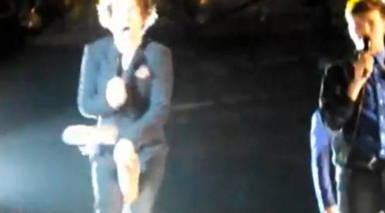 Pjevač je pao na pod i jaukao od bolova, no ubrzo se ustao i nastavio s koncertom.