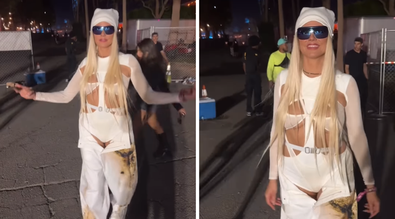 Njezin festivalski look, zabilježen tijekom prvog vikenda Coachelle u Indiju u Kaliforniji, sastojao se od nekoliko upečatljivih komada. Nosila je bijelu kapu, futurističke sunčane naočale i mrežasti top s brojnim izrezima koji je malo toga ostavljao mašti.