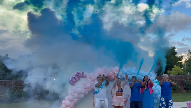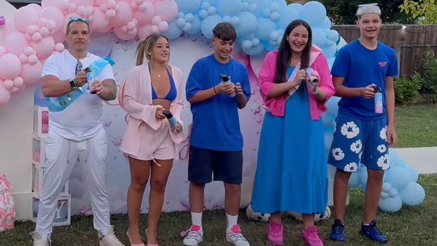 Obitelj je stajala ispred ploče 'Dečko ili cura', a iza njih pojavio se plavi dim, što je označilo da obitelj čeka dječaka. Otac Mario i sinovi Nicolas i Raul vijest su proslavili skokom u bazen.
