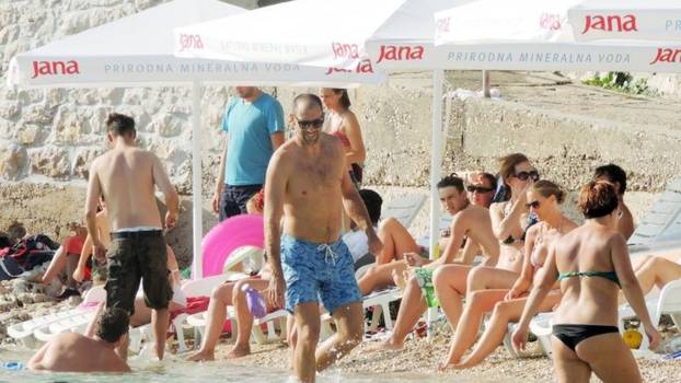 Trener Hajduka spas od vrućine našao je u uvali Palmižana gdje je uživao u suncu na plaži i u kupanju u moru u društvu svoje supruge Stefanije i djece te prijatelja...
