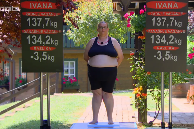 Podsjetimo, Ivana je u show došla sa 137,7 kilograma, a na prvom vaganju izgubila je 3,5 kilograma, odnosno, 2,5% tjelesne mase. U show se prijavila jer želi ponovno uživati u životu sa svojom djecom, tinejdžerima od 12 i 14 godina. Prije tjedan dana show je, kao prva u novoj sezoni, napustila povratnica Antonija.