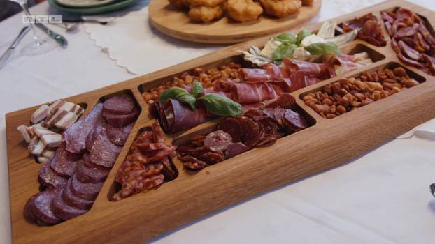 „Ovo će biti neki ajngemahtec ili nešto“, rekao je Mahir gledajući naziv predjela, ali nije ispravno pogodio. Naime, Nataša je za predjelo pripremila bogatu platu s raznim narescima, namazima i svježim lepinjama koje je sama pripremila te se posebno potrudila da sve lijepo posloži i aranžira.