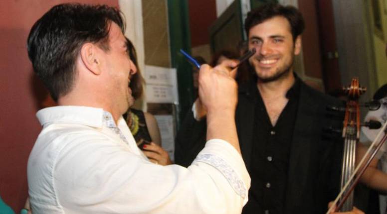 Kakva mi je frizura, pitao je Hauser Joleta dok su pozirali. Pjevač je violončelistu punudio češalj uz opasku kako ga uvijek nosi, ali i Hauser je iz džepa izvadio svoj