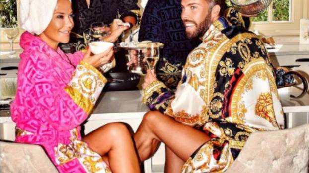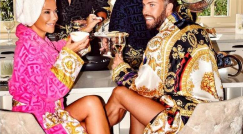 Inače, Maja posljednjih tjedana često pozira u ružičastom Versaceovu bademantilu od 3000 kuna. Jednom je u njemu pozirala u kadi s također papučicama Versace čija je cijena oko 750 kuna. Najupečatljivija fotografija bila je ona s njenim suprugom, najboljim prijateljem i modnim stilistom Markom Grubnićem te njegovim najboljim prijateljem Momčilom Gurovićem. Svi četvero nosili su Versaceov outfit.