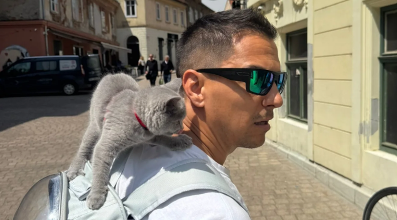Naime, Mario je nedavno nabavio preslatku sivu mačku kojoj je dao ime Zoja Anastasija VII. Ima i poseban ruksak u kojem je vodi u šetnju, a čini se i da se dobro prilagodila povodcu pa je Mario vodi svuda sa sobom.