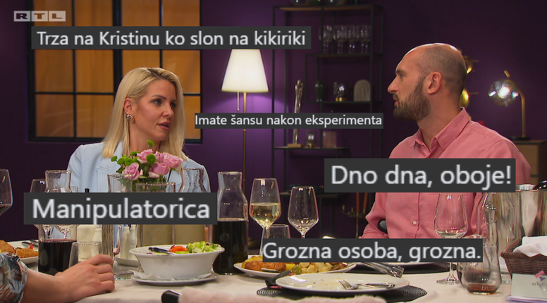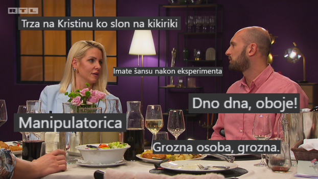 Kasnije je Marko otišao kod Kristine, gdje su također prepričavali događanja s večere. „Mislim da bismo se ti i ja našli super u eksperimentu“, podijelio je Marko i s njom ideju da su njih dvoje u braku. „Frano je moj prvi i zadnji muž svakako. Dokle god sam tu, ja sam Franina žena i on je moj muž, i to će tako i ostati“, jasna je bila Kristina, ali se i složila s Markom kako bi bili super par da su ih stručnjaci spojili.