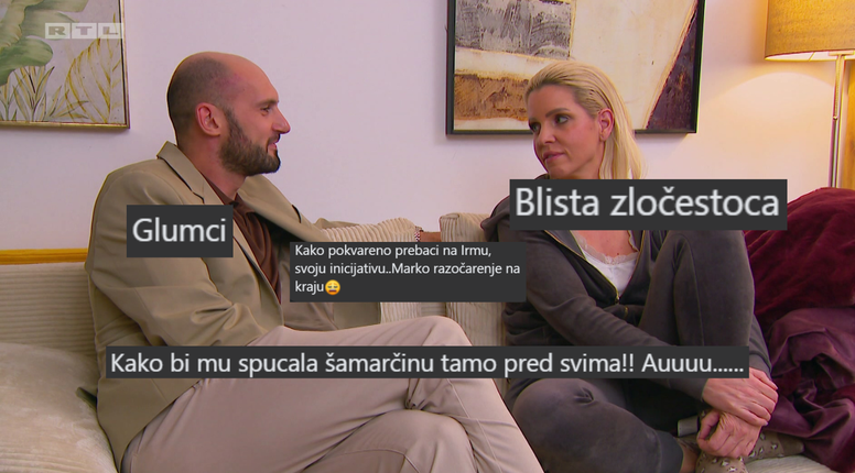 'Kako pokvareno prebaci na Irmu, svoju inicijativu. Marko razočarenje na kraju', 'Glumci', 'Kakav glumac', 'Kako bi mu spucala šamarčinu tamo pred svima', pisali su gledatelji.