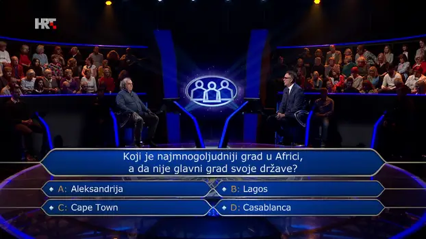 Poznato kvizaško lice Dražen Cukina iz Karlovca otvorio je emisiju nastavkom igre iz prethodnog izdanja. Inače je u mirovini, a osim što igra kvizove, ponekad ih i vodi. U pratnji ga je bodrila sestra Tihana. Nakon što je u prošloj emisiji osigurao 5.000 eura, Dražen je otvorio 11. pitanje koje je glasilo: “Koji je najmnogoljudniji grad u Africi, a da nije glavni grad svoje države?”. Odlučio se za pomoć pitati publiku koja je najveći postotak glasova dala za odgovor B: Lagos. Iako je prvotno smatrao da to nije odgovor za koji bi se odlučio, vjerovao im je - i tako osvojio 10.000 eura!