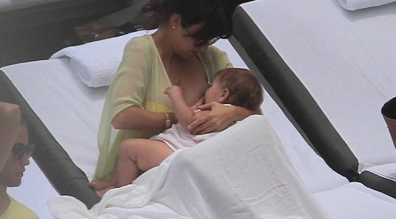 NAVIKNULA SE Kardashian nije ni trepnula kad su je fotografirali na bazenu dok je hranila kćer. Svukla je gornji dio kupaćega kostima i zadovoljila kćerinu potrebu