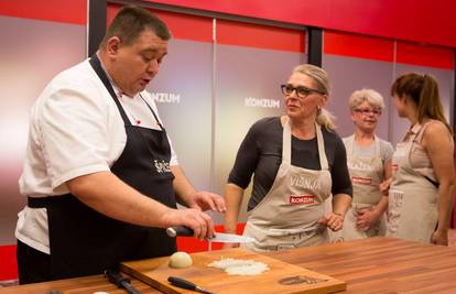 Uz rebarca kao današnju glavnu namirnicu, pod zvonom im je stavio i glavicu luka uz napomenu da ga moraju očistiti i narezati prije nego li on dođe u obilazak. Vidjevši da se i ostali natjecatelji muče s rezanjem luka, pri čemu se često i porežu nožem, Špiček će ipak uzeti stvari u svoje ruke i održati im školicu na temu 'kako pravilno narezati luk'.