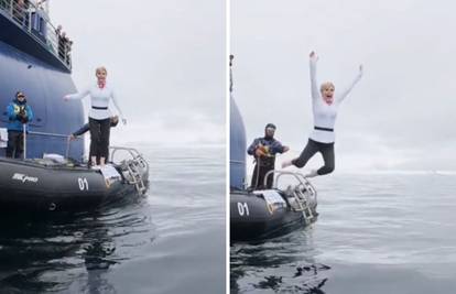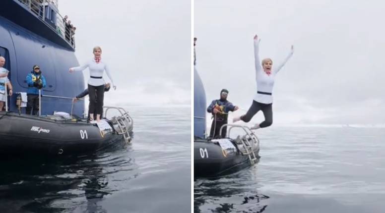 Među njima je bila i Grabar-Kitarović. Na snimci koja je objavljena prije nekoliko dana vidi se kako s gumenjaka skače ravno u ledeno more.