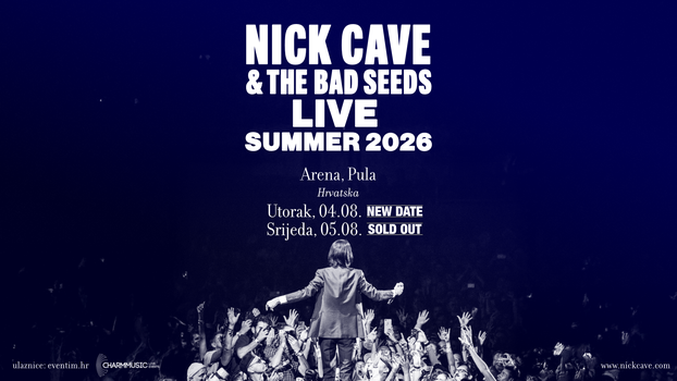 Interes za koncert Nicka Cavea & The Bad Seeds u pulskoj Areni premašio je sva očekivanja. Prvi najavljeni datum, 5. kolovoza 2026., rasprodan je u samo pet dana, a upravo je dodan još jedan datum - 4. kolovoza 2026. za koji su ulaznice već u prodaji i to putem Eventim sustava te na Eventim fizičkim prodajnim mjestima.
