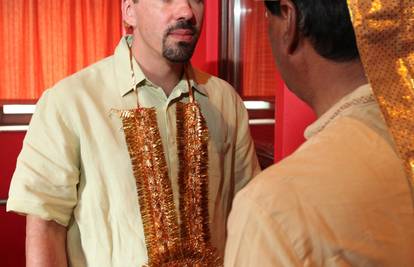 Vlasnik Maharadje, jedinog indijskog restorana u Zagrebu, Ratan Kumar Chaudhary kulinarskog stručnjaka dočekao je u indijskom stilu. Htio mu je pokazati da ga poštuje i cijeni pa ga je ukrasio indijskom ogrlicom i iscrtao crvenom bojom.
