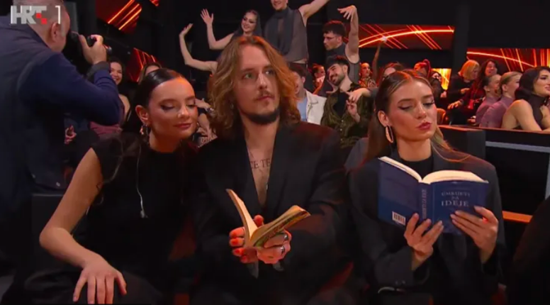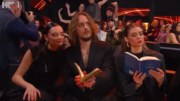 Naime, kamere su ponovno u green roomu nekoliko puta uhvatile Kutlića u nesvakidašnjem izdanju za jedno glazbeno natjecanje – umjesto druženja s članovima tima i ostalim natjecateljima, u ruci je držao knjigu i mirno čitao, baš kao i u polufinalu. Na stolu ispred njega nalazilo se još nekoliko knjiga.