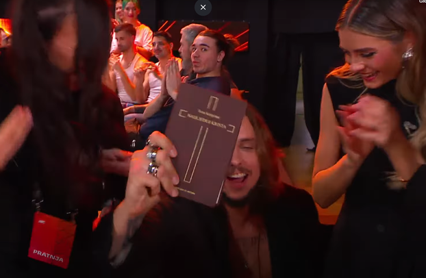 Komentari 7Dok su voditelji čitali koliko je koja pjesma osvojila bodova, pjevač se odlučio za čitanje, a i u finalu je taj potez privukao pozornost kamera i gledatelja