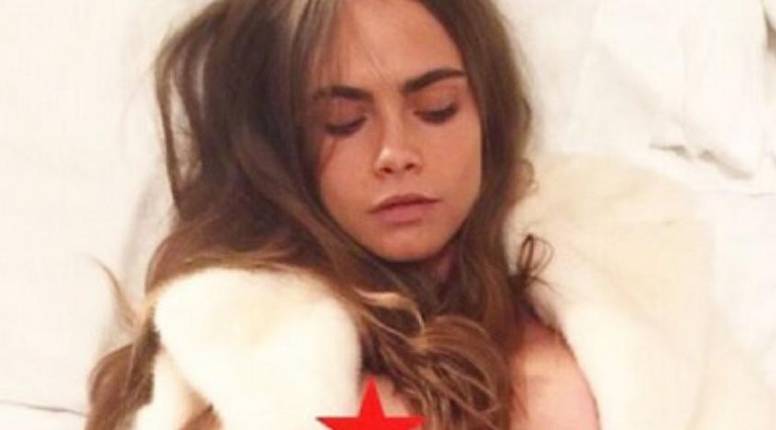 Ispod majice, Delevingne nema ništa, osim strateški postavljenog suncokreta.